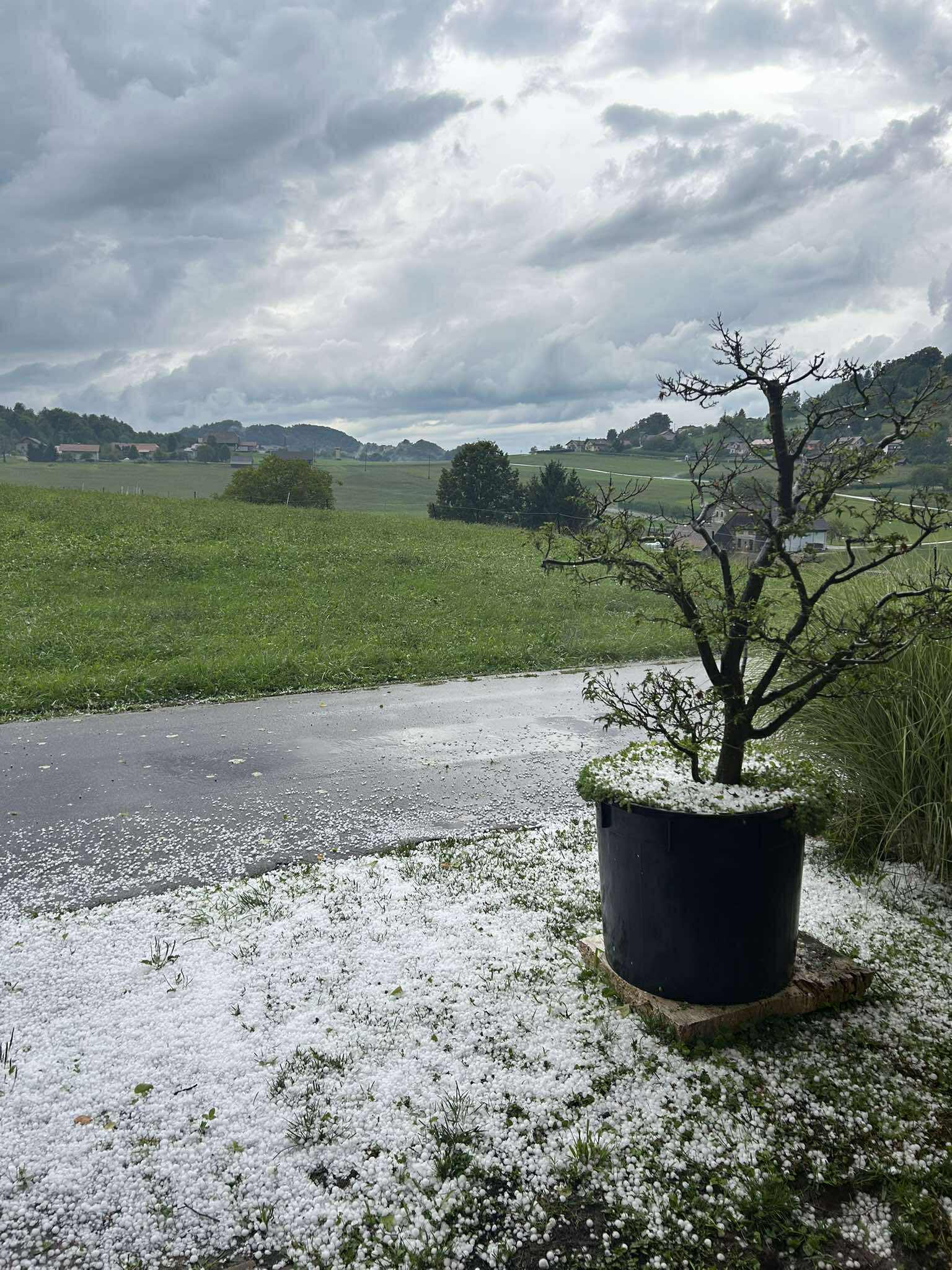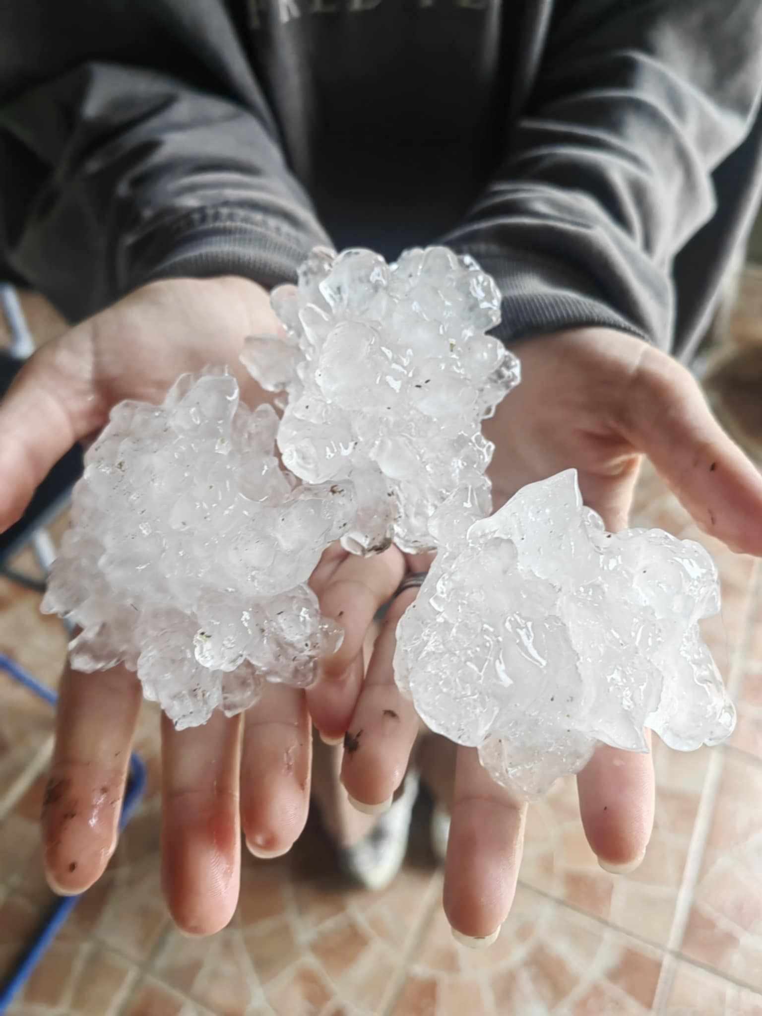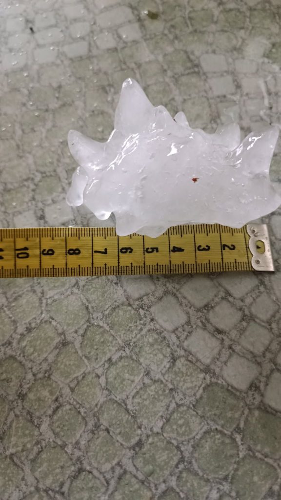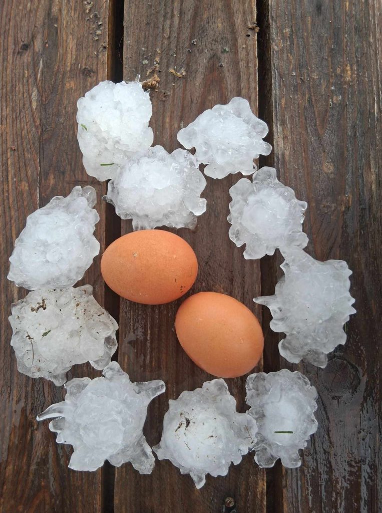 Na območju Jazbinega vrha, je padala toča v velikosti kokošjih jajc.