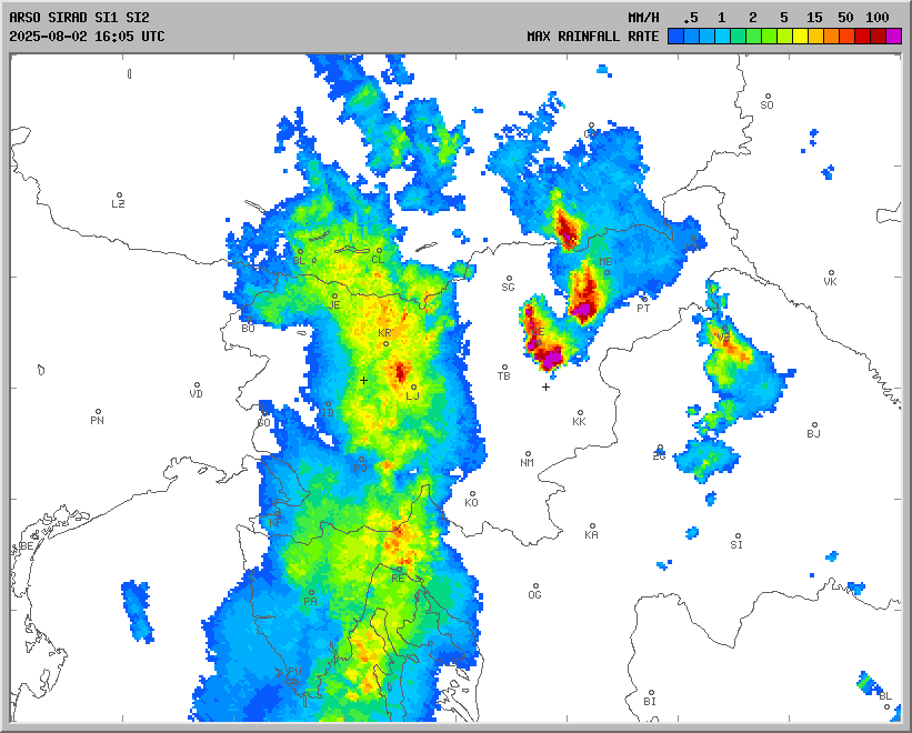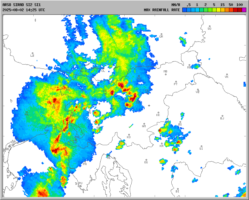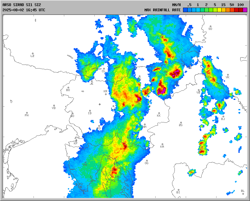 Spodnja radarska slika padavin prikazuje razvoj nevihtnih celic na Savinjskem. Te nevihtne celice je nato višinski veter nosil preko Štajerske v smeri Prekmurja. Prva poročanja o debelejši toči smo prejeli iz območja Celjske kotline. Debela toča je padala na območju Šempetra in Žalca, nato pa je precejšnjo škodo povzročala tudi marsikje po vzhodni Celjski kotlini in okolici. Na območju Žalca je padala toča premera kar 10 cm. Na območju Podravja in Prekmurja pa do 5 cm premera. Na postaji Letališče Edvarda Rusjana Maribor je ob prehodu prve supercelične nevihte v pol ure padlo 28,3 mm padavin, sunki vetra so dosegli 106,2 km/h ob 18:32, na Ptuju je kasneje ob drugi supercelični nevihti pihnilo do 75,9 km/h, ob 19:18 uri.