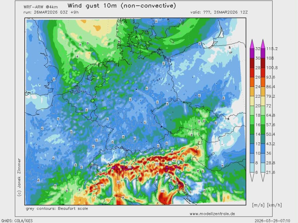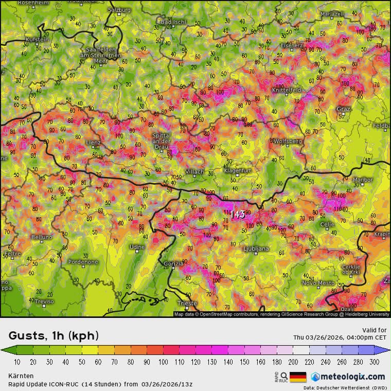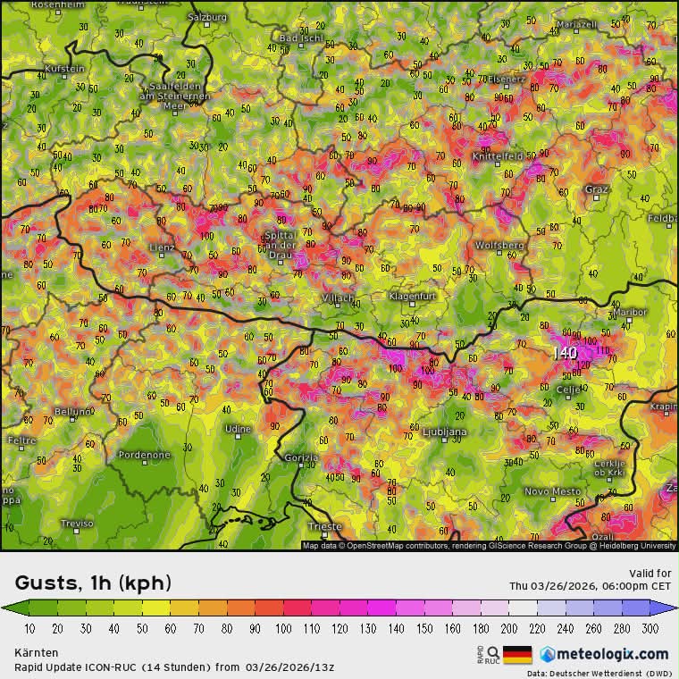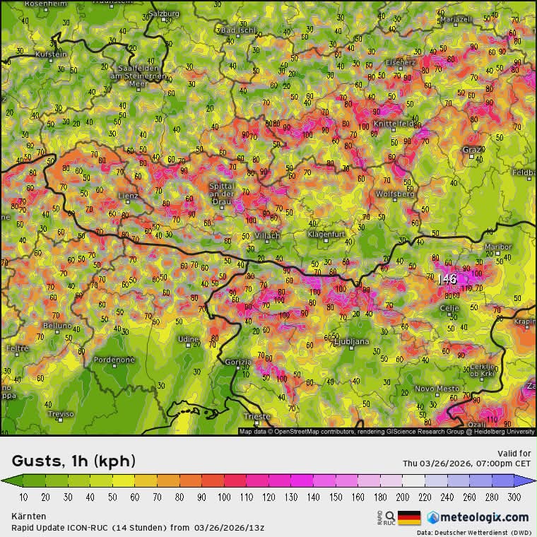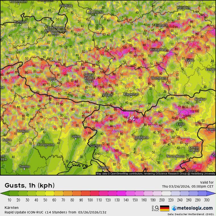Z profesionalnim merilcem je bilo ob 17. uri izmerjen sunek 117,7km/h.