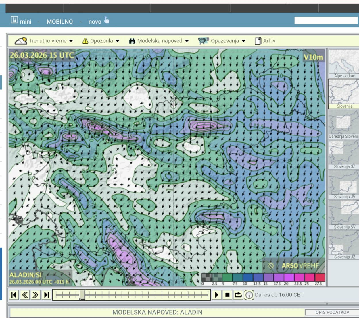 Izmerjen najmočnejši sunek vetra ob 17. uri.(117,7km/h) Avtor: Gregor Božič