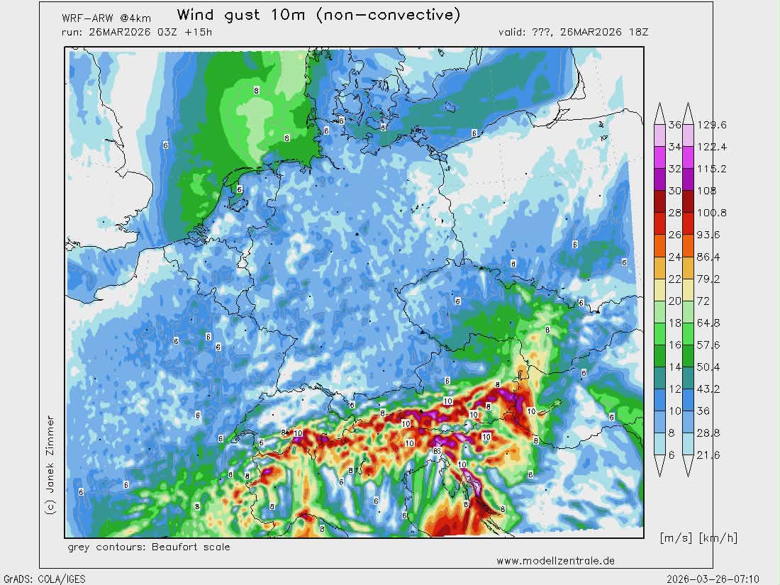 Ker so meterološki modeli kazali izjemno močne sunke vetra pod Karavankami (tudi do 140km/h), se tja 26. marca tudi odpravimo. Glavnina močnega vetra bi naj bila od zgodnjega popoldneva in do dopoldneva naslednjega dne. Lokacija, kjer smo se odločili, da bomo merili sunke vetra, je bila Žirovnica. Žirovnico izberemo zato, ker je znano, da je ta kraj ob karavanškem fenu med najbolj izpostavljenimi. Ob vožnji do Žirovnice smo opazili ostro mejo med krajem z močnim vetrom in krajem, kjer vetra skorajda ni bilo. Ko smo se peljali po avtocesti, je bilo od Ljubljane pa vse do Kranja skorada brezvetrje, nato pa se je veter močno okrepil.