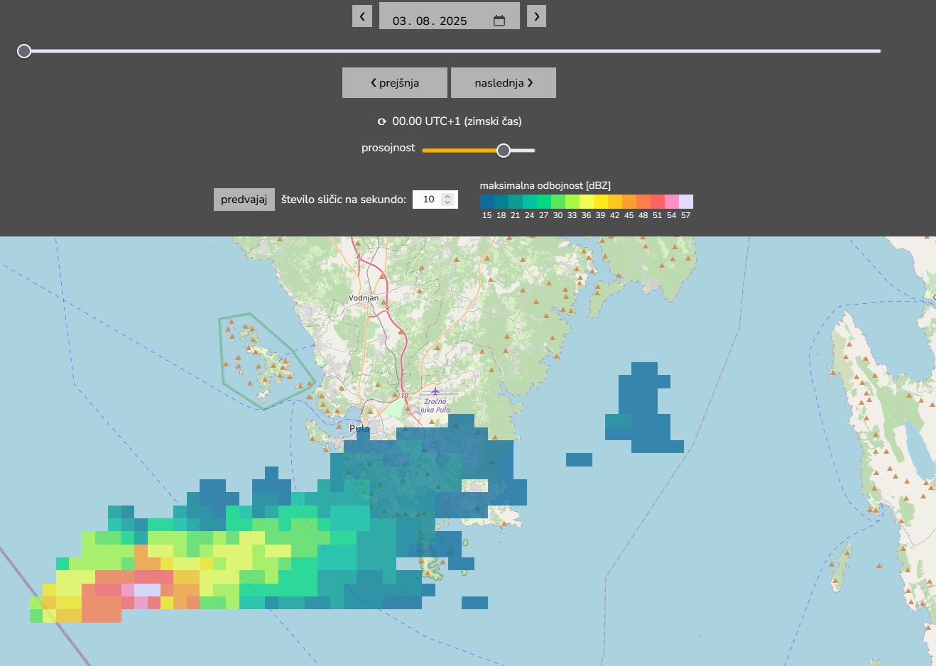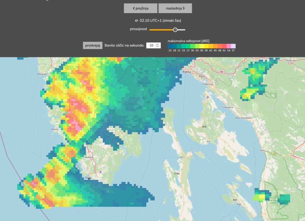 Radarska slika padavin v času fotografiranja.